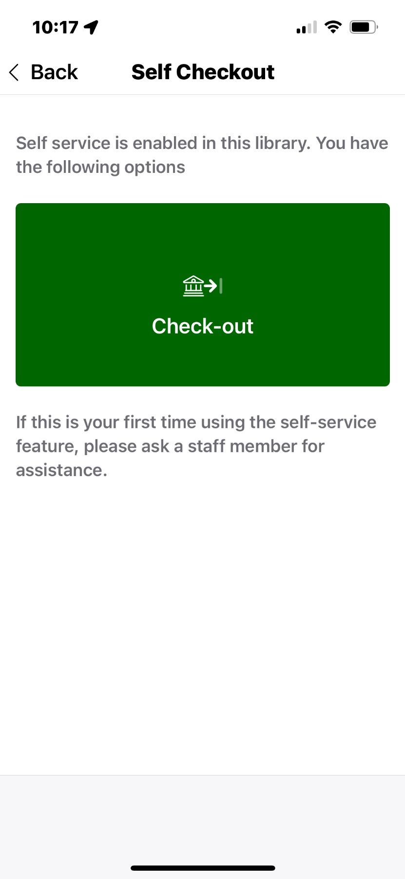 Tip: You must be at the library location and have location services turned on to utilize self-check.